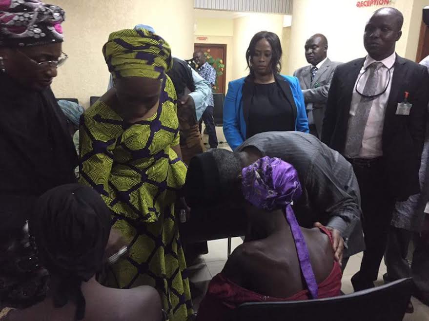 received the released 21 Chibok girls in Abuja this evening. Osinbajo